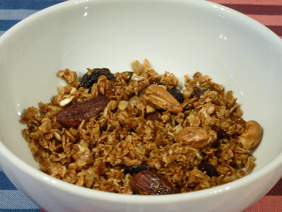Já há algum tempo que pensava em fazer granola. Já tinha visto várias receitas incluindo uma da Siba. O meu marido também viu e começou a pedinchar! Comprei os ingredientes (alguns, não encontrei todos) e algumas semanas depois arranjei tempo e vontade e saiu esta excelente granola.