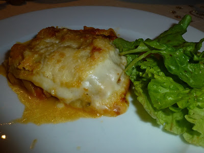 Untar um pirex com o molho bechamel e colocar uma placa de lasanha. Cobrir as placas com molho bechamel. Colocar uma camada de legumes e novamente uma placa de lasanha. Cobrir novamente com o bechamel e colocar uma camada de legumes. Por cima a última placa de lasanha coberta pelo restante bechamel e polvilhada com queijo.
